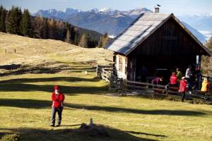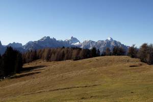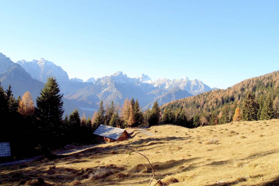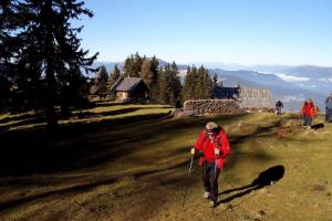Sprva je pot nekoliko bolj strma, toda že po slabe pol ure hoda se pred nami odprejo obširni travniki, na katerih se poleti pase živina. Čisto na vrhu travnatega pobočja, se nam odpre pogled na razvalino, staro vojaško karavlo, ki stoji na meji z Avstrijo. Ta karavla je naš prvi cilj, Vošca (1737m).