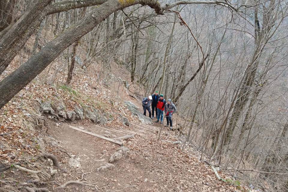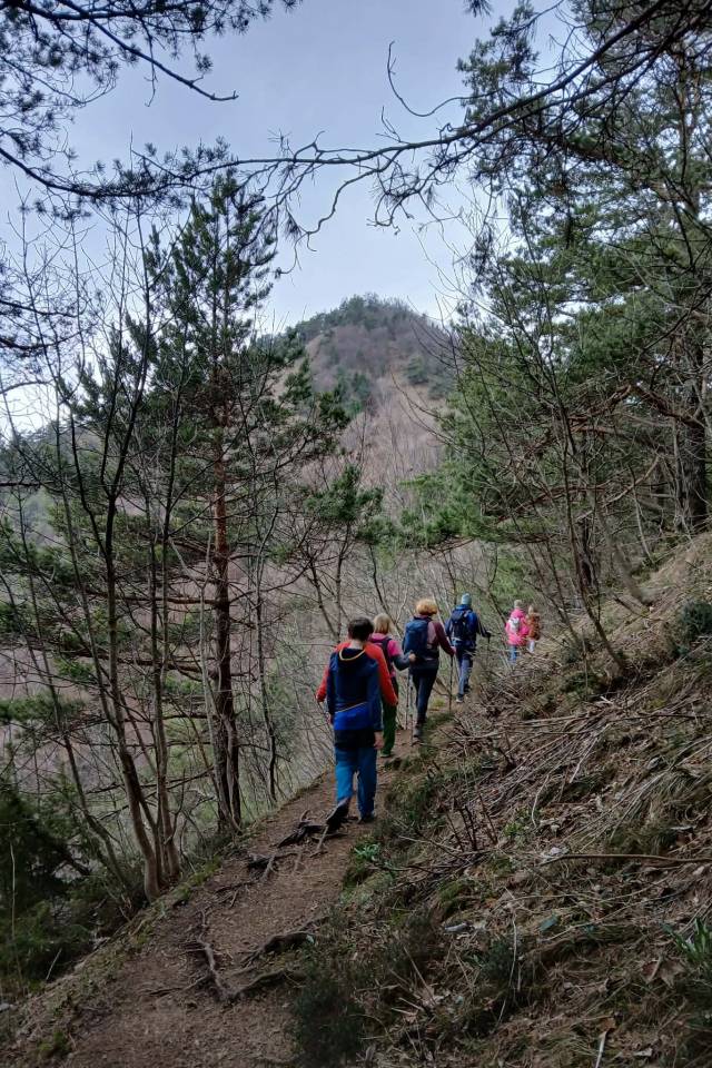 Parkirali smo na prostornem parkirišču pri šoli, kjer so nas najprej pozdravile žabice, ki so že začele s svojimi spomladanskimi opravki. Nebo se nikakor ni moglo odločiti: malo sonca, malo vetra, nekaj kapljic dežja — a večinoma prijetno oblačno. Pot je bila suha, saj se je blato že presušilo, na vrhu pa je bilo presenetljivo malo ljudi, tako da smo v miru pomalicali in uživali v razgledih.