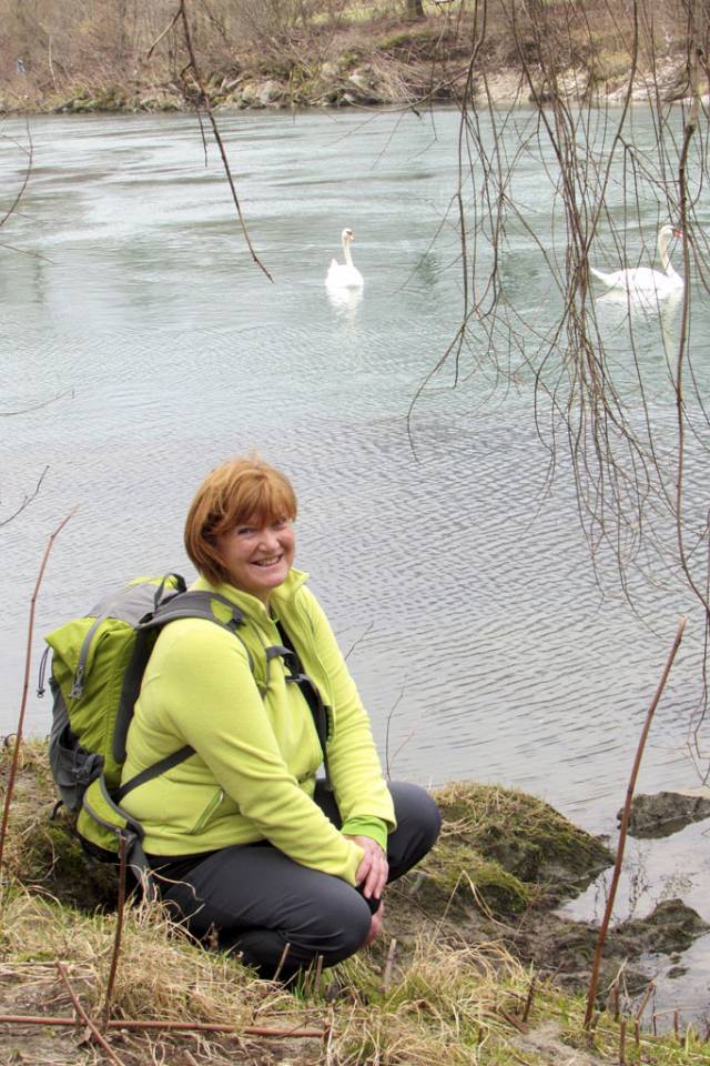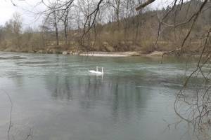 Na mirni gladini Save se je zrcalila Šmarna gora in mirno sta plavala laboda. O narasli reki in poplavah nam je veliko povedal naš član Pavel Šušteršič.