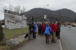 Na pustno nedeljo, 7. februarja 2016 je z oblaki prekrito nebo napovedovalo dež. Za prave hribe ni bilo primerno in ravno prav – odpravili smo se spoznavat našo bližnjo okolico. 18 planink in planincev, smo se kot običajno zbrali na parkirišču v Tacnu in si najprej prebrali zgodovino Tacenskega mostu.