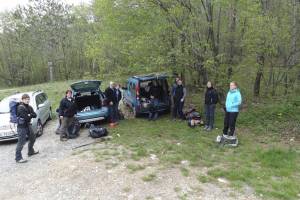 Kot že rečeno, po zboru v Tacnu, smo se odpeljali proti primorski. Med potjo smo vsi po vrsti opazovali kislo vreme. Po dobri uri smo prispeli do izhodišča, kjer nas je pričakal še en udeleženec, član mladinskega odseka PD Ajdovščina – primorski gorski divjak »brez kondicije« Domen Pirjevec .