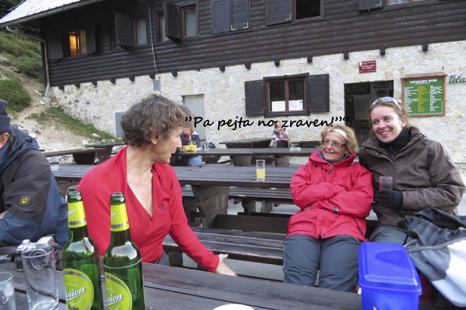 Pred vrhom, ko smo resnično postajali že rahlo utrujeni, nas je pozdravila še »lojtrca«, še par korakov in Jeeeeeee…..bili smo na vrhu! Vzeli smo si čas za izdaten počitek in malico, slikanje, klepet z zanimivim obiskovalcem iz Jeruzalema in nekateri (beri Katarina Kadivec) so si privoščili tudi popoldansko spanje; očitno jo je naša »hitrost« dodobra utrudila! Ha!