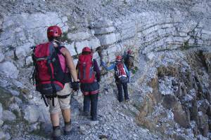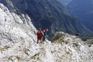 Polni pričakovanj smo se še v svežem jutru odpravili na pot proti Prisojniku. Hanzova pot je bila popravljena in ponovno odprta.