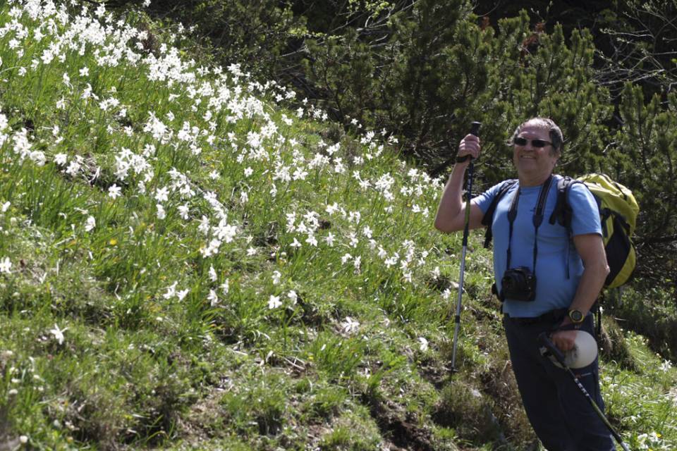 Zbralo se nas je sedemnajst in polni pričakovanja smo se zapeljali proti Jesenicam. Ker brez jutranje kavice včasih ne gre, smo se ustavili na počivališču Lipce, kjer smo si ob kavici privoščili še zadnje prebujanje. Kmalu smo se odpeljali naprej v Slovenski Javornik , kjer smo se na parkirnem prostoru presedli v manjše število avtomobilov, da nebi višje delali nepotrebne gužve. Pot smo nadaljevali mimo lepe gorske vasice Javorniški Rovt, kjer smo opazovali čudovite bele travnike poraščene z narcisami. Po parih kilometrih vožne smo prispeli do parkirnega prostora Križovec, ki leži na višini 1222 m, kjer smo pustili svoje avtomobile.