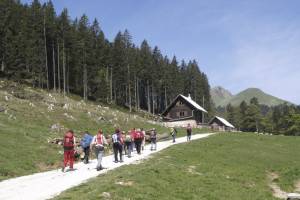 Po kratkem postanku in okrepčilu smo se odpravili nazaj do Pustega rovta in naprej do Križevca kjer smo parkirali, toda tokrat smo šli po spodnji vozni poti, katero so naredili pred parimi leti in s tem olajšali dostop do planine.