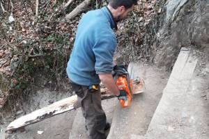 V soboto, 27. februarja smo markacisti odstranili drevo, ki se je nevarno nagibalo nad Pot čez Spodnjo Kuhinjo. Ko smo že bili na gori, smo popravili tudi stopnico na isti poti. Sedaj bo vzpenjanje lažje, saj bo krajši korak in tudi sestop varnejši. Delali smo: Darja, Zvone, Anže in Marjan.