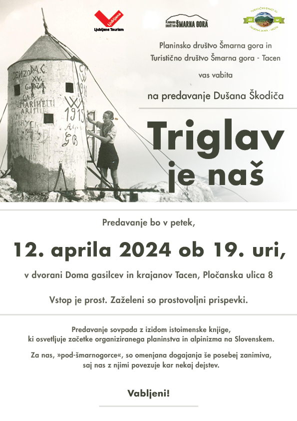 Planinsko društvo Šmarna gora in Turistično društvo Šmarna gora - Tacen vas vabita na predavanje Dušana Škodicča: Triglav je naš