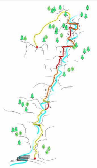 Spodaj sta skici ferat v Mojstrani in ferate Hvadnik v Gozd Martuljku.