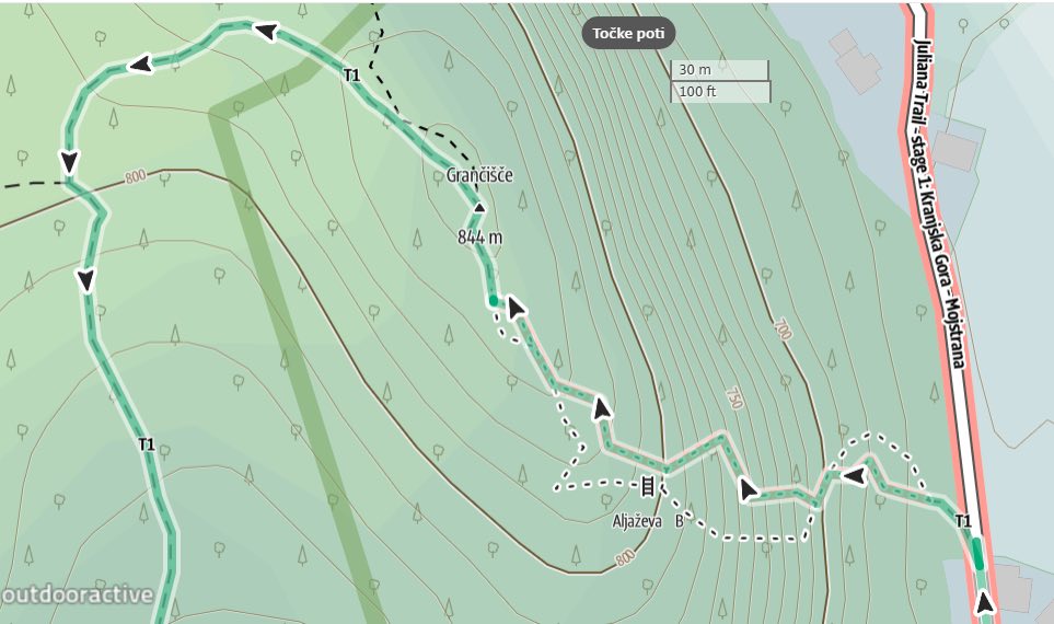 Nato bi se zapeljali v Mojstrano in parkirali na parkirišču Fabrka (0,80€ na uro, parkirišče je cca 10 minut oddaljeno od vstopa v ferati). Tu bi se napotili v ferato "Pot Mojstranških veveric", ki se zaključi z izstopom na vrhu hriba Grančišče - 844 m. Ferata je ocenjena z oceno C in mestoma D, visoka je 180m, dolga pa 250m in zahteva že nekoliko znanja. V kolikor pa bi bila za večino prezahtevna, se bomo povzpeli po vzporedni in lažji ferati "Aljaževa pot", ki se prav tako izteče na vrhu Grančišča. Tudi ta ferate je visoka 180 m in dolga 250 m, a je primerna za tiste, ki se še urijo v skalnem svetu, saj je ocenjena z oceno B.