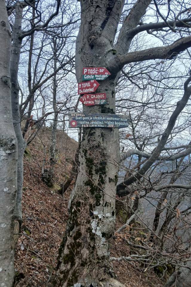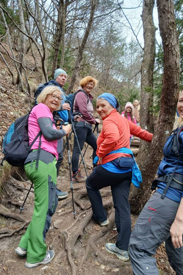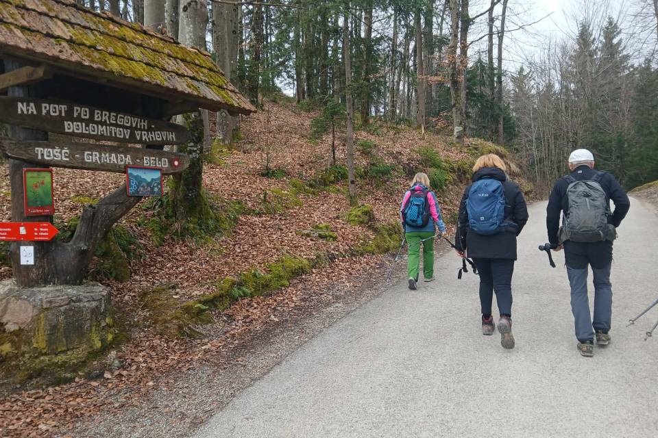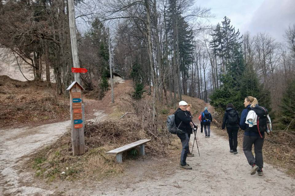 Parkirali smo na prostornem parkirišču pri šoli, kjer so nas najprej pozdravile žabice, ki so že začele s svojimi spomladanskimi opravki. Nebo se nikakor ni moglo odločiti: malo sonca, malo vetra, nekaj kapljic dežja — a večinoma prijetno oblačno. Pot je bila suha, saj se je blato že presušilo, na vrhu pa je bilo presenetljivo malo ljudi, tako da smo v miru pomalicali in uživali v razgledih.